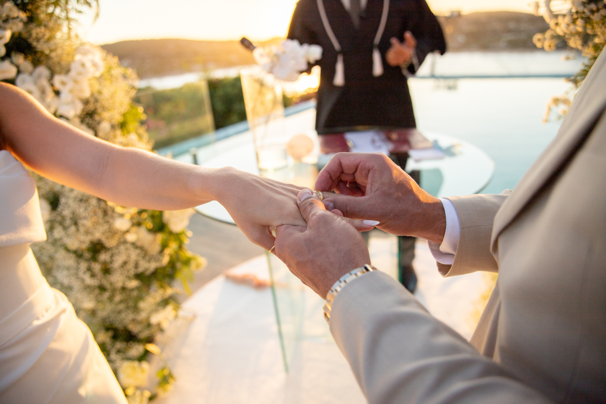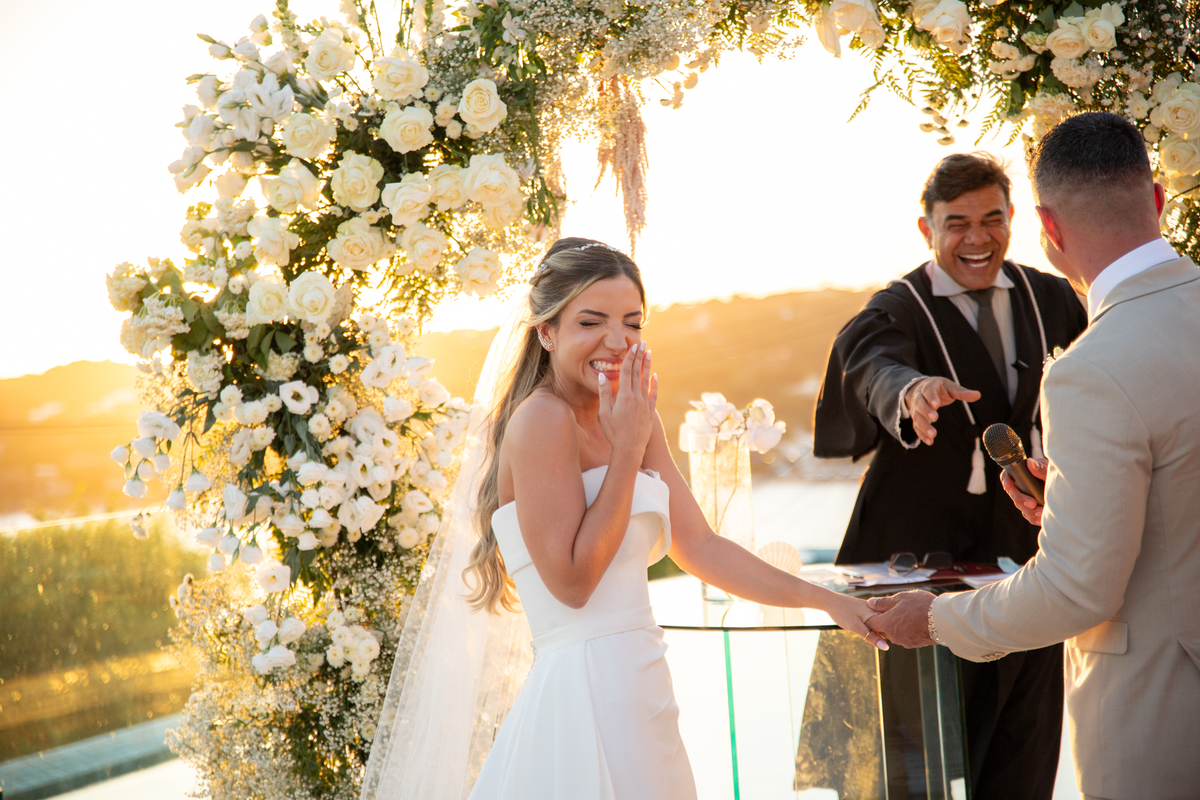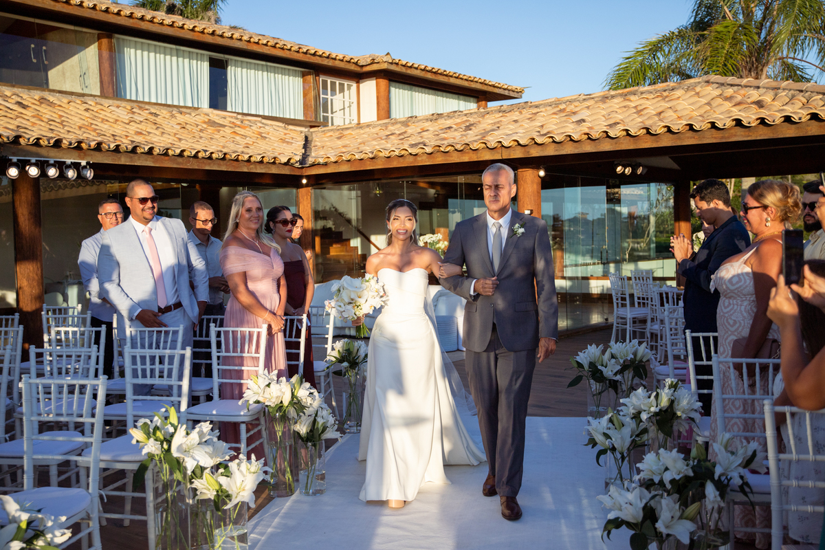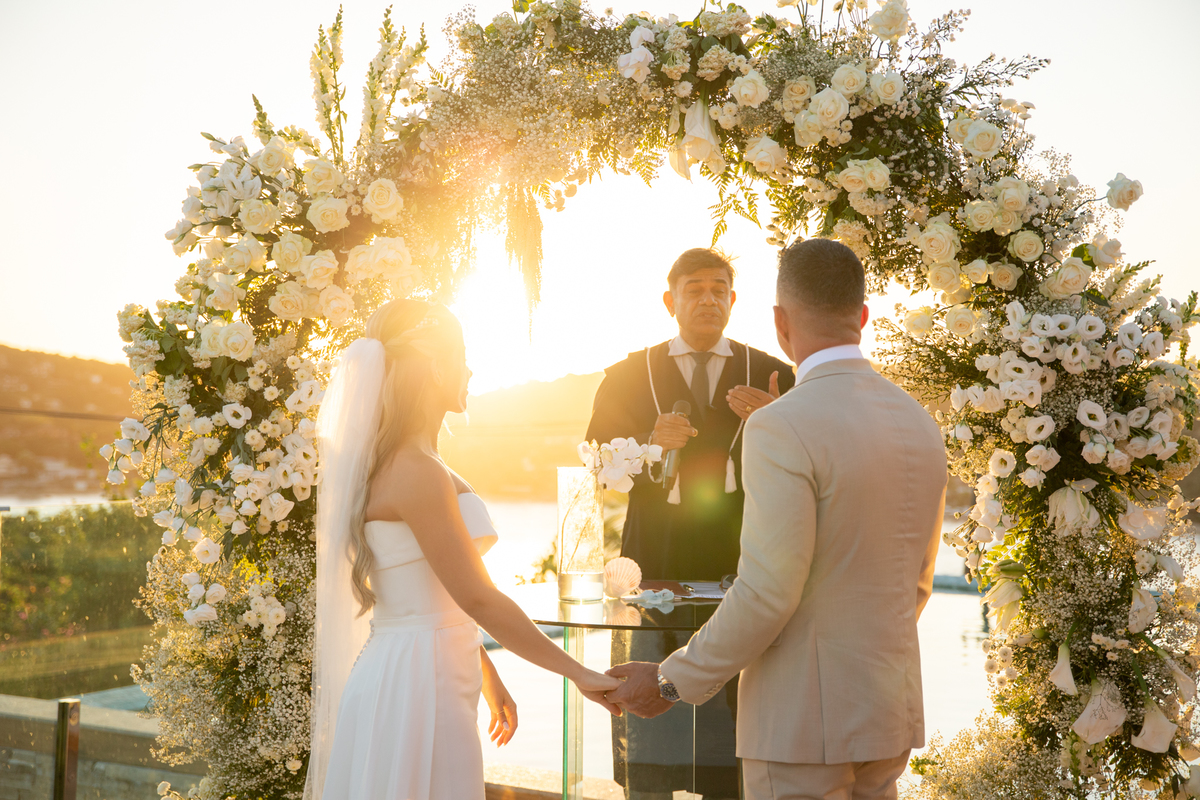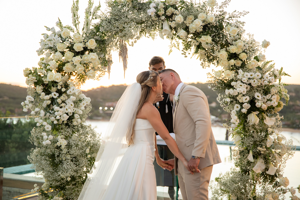 Fotografar o casamento da Nathália e do Otavio foi um verdadeiro presente. Em um fim de tarde mágico em Búzios, com o céu tingido em tons dourados e alaranjados, tive a honra de registrar um dos dias mais especiais da vida deles — e que honra!